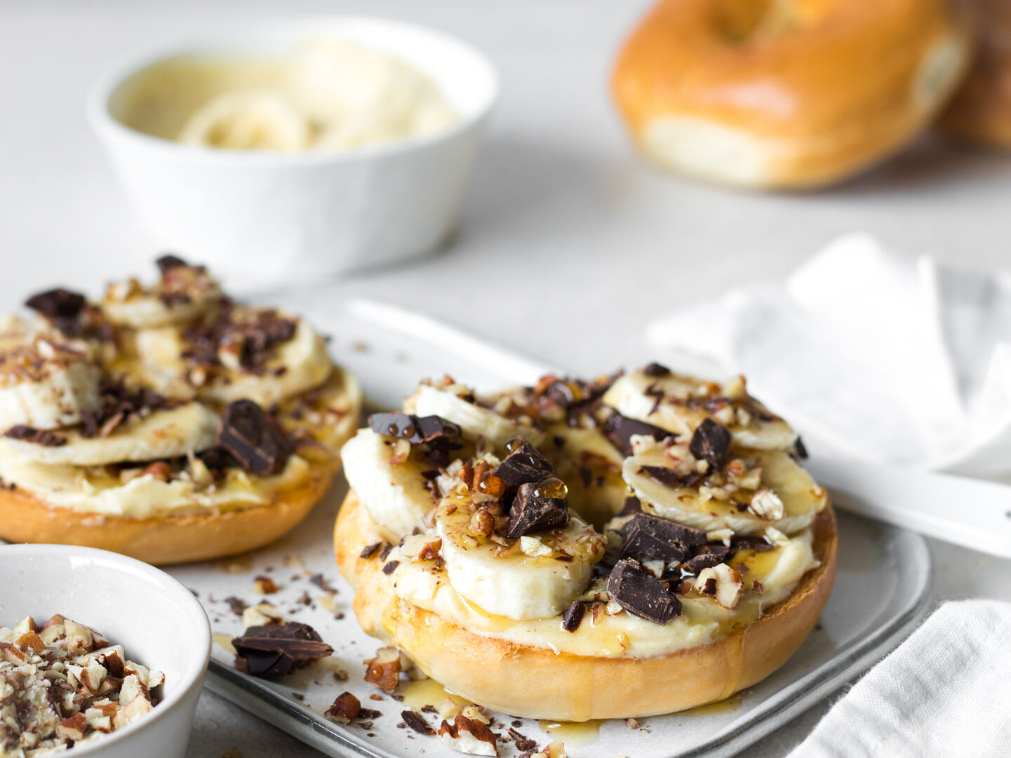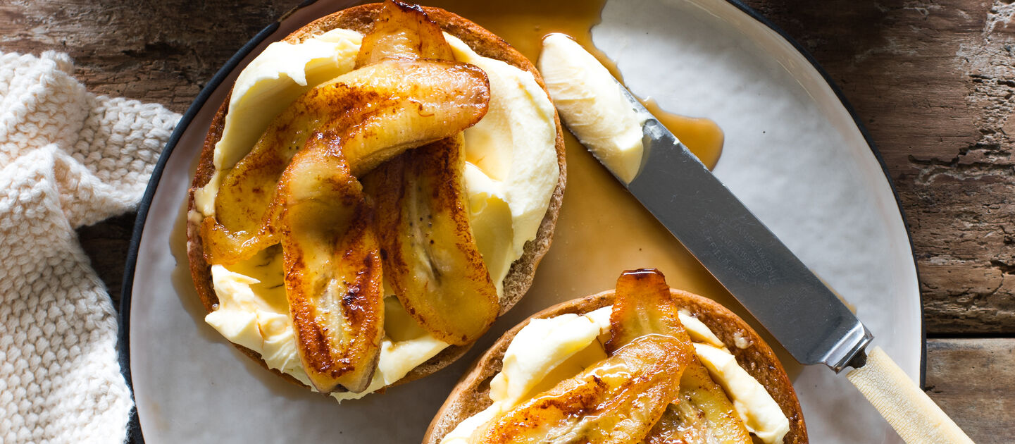 Sweet brekkie lovers, this one's for you. Banana, chunks of choc, and a generous swipe of brown butter cream cheese.